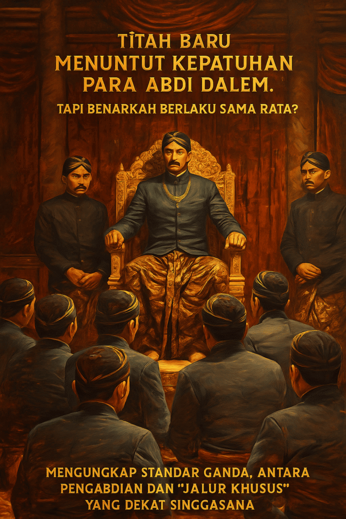 Lingkungan keraton kita kembali mendapat titah baru—atau mungkin lebih tepatnya, angin kencang—berupa seruan pengetatan tata krama abdi dalem. Sebuah sabda yang, di atas lontar, terlihat sangat mulia. Siapa yang tidak setuju kalau abdi dalem harus jadi teladan? Kita semua merindukan sosok kawula yang sempurna: datang sebelum matahari terbit, pulang setelah gapura ditutup, dan mengabdi tanpa kenal lelah.